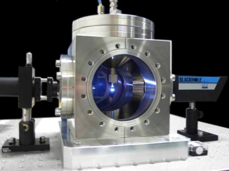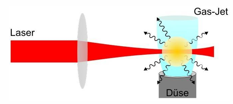 通过将强Nd:YAG激光聚焦到脉冲气体靶中,可以点燃一个极紫外EUV等离子体。该光源在13.5 nm波长处可提供约4 mJ的脉冲能量,重复频率为1-10 Hz。其最显著的特点之一是结构紧凑,允许在实验室环境下进行EUV实验。经过优化的喷嘴几何形状可实现高达0.45%的转换效率。此台式极紫外与软X射线等离子源由哥廷根激光实验室(Laser-Laboratorium Göttingen)开发。等离子体由一台1064 nm, 800 mJ, 7 ns Nd:YAG激光器聚焦到脉冲气体射流中产生。可使用不同的靶气体来分别产生强宽带辐射(XUV:氪 Kr, Ar EUV:氙 Xe)或较弱但窄带的辐射(XUV:氮 N EUV:氧 O)。该等离子光源规格参数如下: