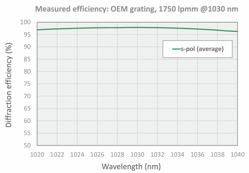 * 定制激光脉冲压缩VPH光栅时,所需的最低效率将决定单价,最高可达98%。