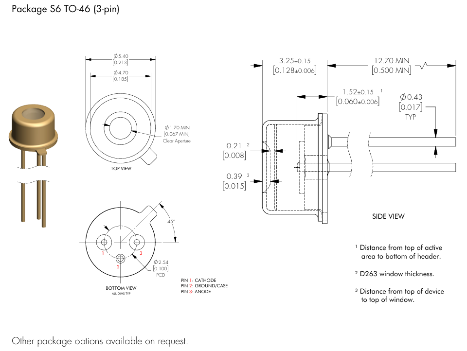 1100~1700nm InGaAs雪崩光电二极管的IAG封装图纸: