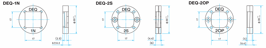 深紫外-中红外消偏器DEQ-1N, DEQ-2S和DEQ-2OP的外形图,单位:mm