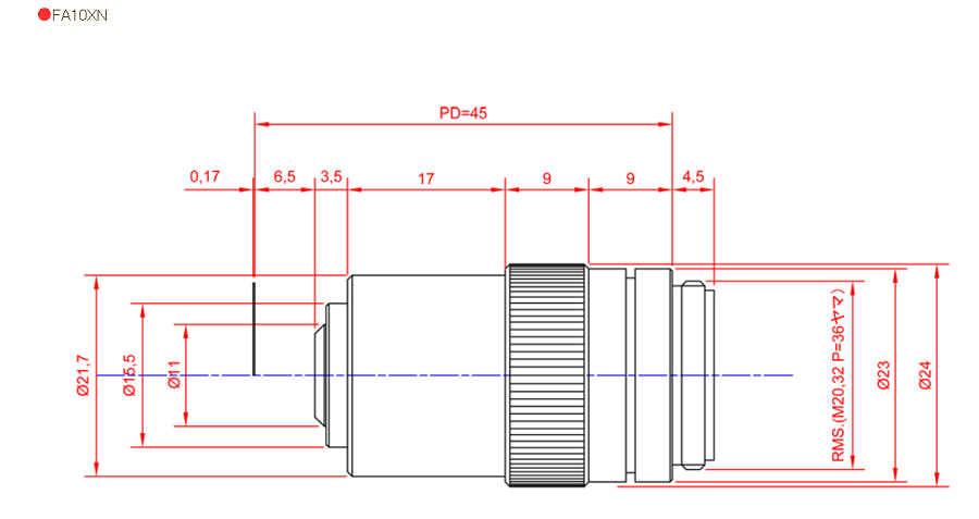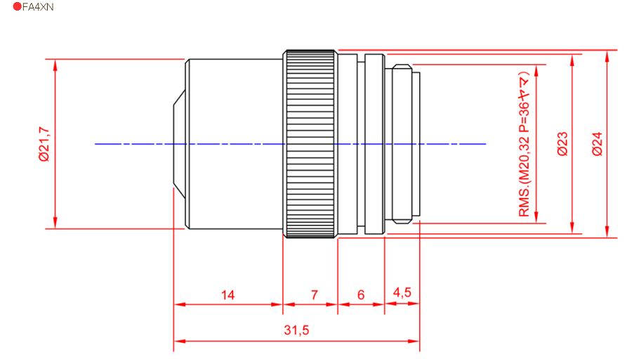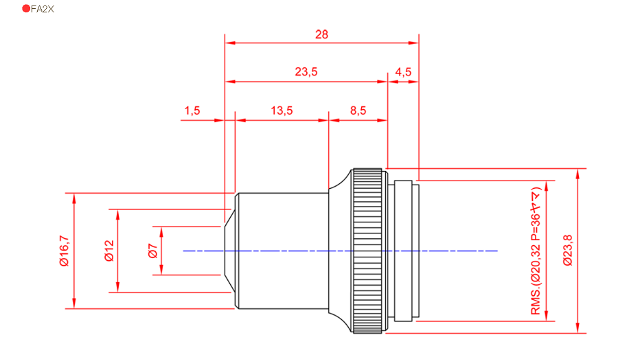 涩谷光学160mm有限远物镜、生物有限远物镜FA2X,FA4XN,FA5X,FA6X,FA10XN外形图: