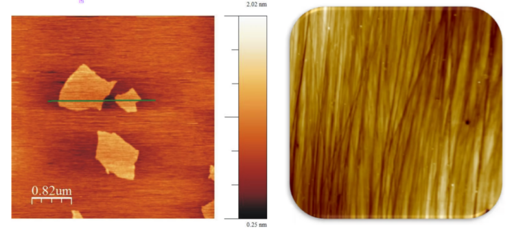 图2:左:使用ezAFM扫描单层石墨烯的成像 右:使用ezAFM对蓝宝石表面扫描成像