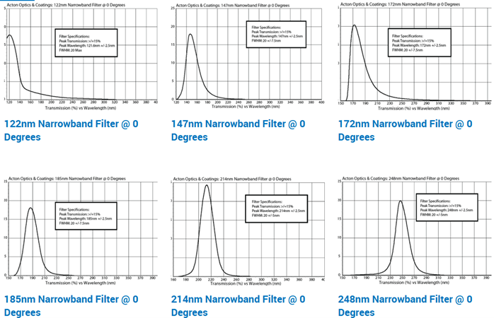 Acton真空紫外/紫外滤光片(VUV/UV Narrowband Filters)的标准品: