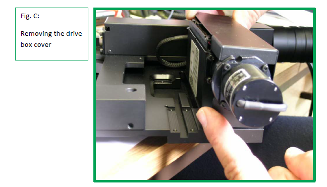2) 移动X轴直到可以看见电缆和固定螺丝(如Fig.E所示)