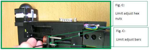 6) 此时限位调整六角螺丝和限位调整杆将可见