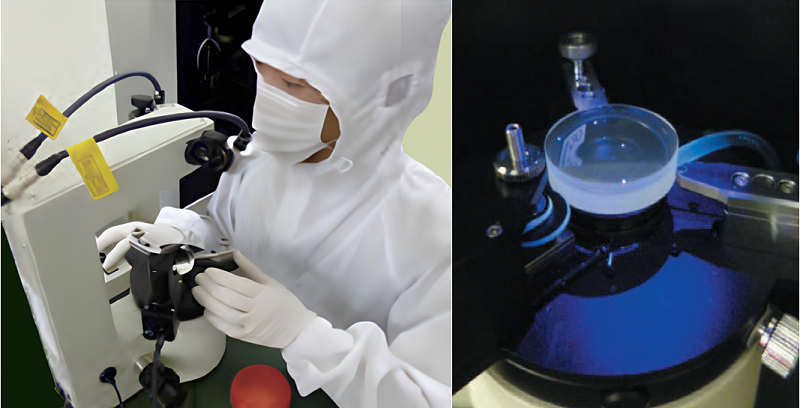 显微镜用物镜等组合透镜常包含若干个胶合而成的组合透镜,其中,透镜的胶合,通常使用紫外光固化粘接剂,胶合时先把涂布了粘接剂的透镜重叠在一起,然后使用偏芯显微镜确认偏芯程度并进行调整,最后使用紫外光完成固化,如图1左图。但是,粘结剂的固化过程会影响偏芯状态,因此,西格玛光机在其调整/硬化工程中,需要充分预估粘结剂的固化影响才能获得最高质量胶合透镜。