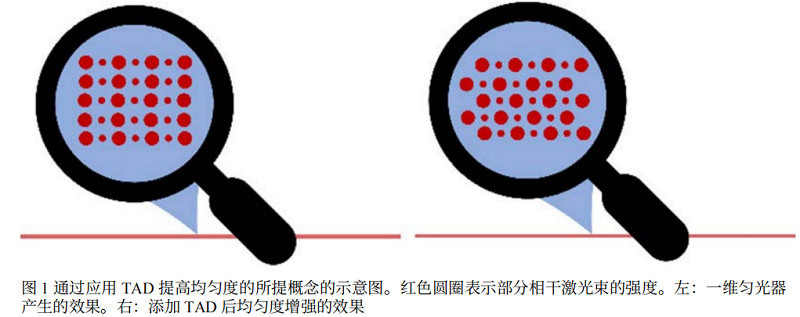 通过使用根据激光束特性(如光束尺寸和M2值)专门设计的TAD,可以对强度分布进行细微调整。因此,长轴上的总强度表现出显著提高的均匀性,同时保持薄轴的厚度。这种效果在图1的右图中得到展示。