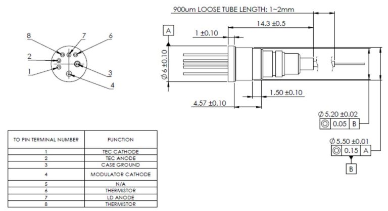 需要强调的是,蝴蝶型封装的光纤耦合激光二极管结构复杂,存在多种引脚配置和接地方式(如完全浮动、阳极接地等)。将其组装到特定半导体激光驱动器上时,需进行相应验证。