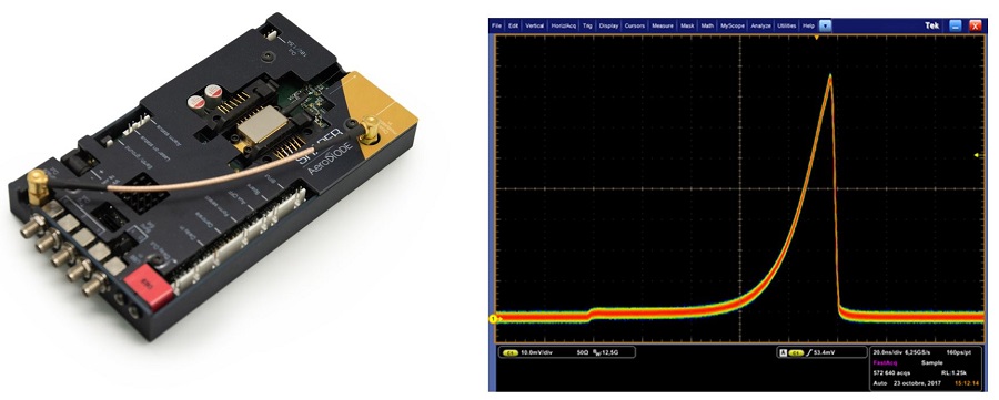 AeroDIODE Shaper board:这款脉冲整形器旨在解决前述脉冲驱动中的诸多问题。脉冲整形器能对脉冲形状进行预补偿,并具备特殊的增益开关抑制能力。脉冲整形器内置AWG的数据点间隔为500ps,动态范围达48dB,可生成极短脉宽的可调脉冲,并配有3路脉冲延迟发生器输出。