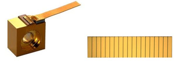 组装在子底座上的单个元件(左)或由19个发射体组成的单巴条。