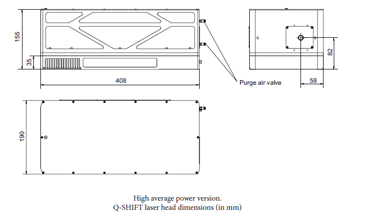 低平均功率版本Q-SHIFT 激光头尺寸(单位:mm)