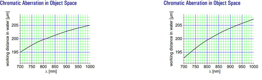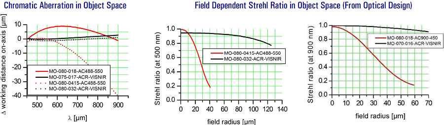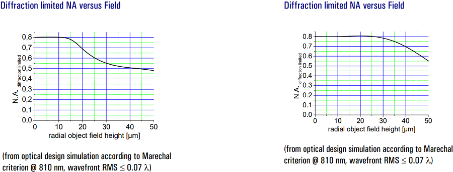 不同的产品版本在复杂性上有所不同,因此在像差校正程度上也有所不同。而色度校正和场校正光学器件的突出之处在于,与物镜的机械直径相比,高数值孔径下的可用物场尺寸与宽光谱范围内的色度校正相结合。GRINTECH的最新一代物镜的另一个特点则是场曲率显着降低。