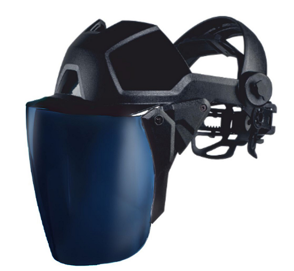 手持激光焊接过程中保障眼部与面部安全的舒适防护方案。面罩(FS1)搭配P1P23滤光片,可为激光焊接中常用的1060-1080nm波长光纤激光器提供符合EN207标准的激光防护,同时依据EN ISO 16321-2标准抵御焊接过程中产生的等离子体辐射。该面罩在佩戴舒适性方面树立了新标杆,重量仅386g。通过精密弹簧驱动连杆实现的折叠机构,使系统达到平衡,配备可调节高度与宽度的头带及uvex蜘蛛颈设计,进一步完善了人体工学减压体验。