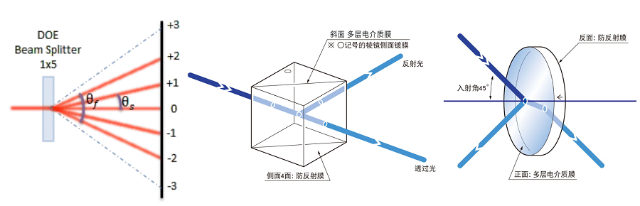 图1从左到右分别是分束器、立方体分光镜和平板分光镜示意图