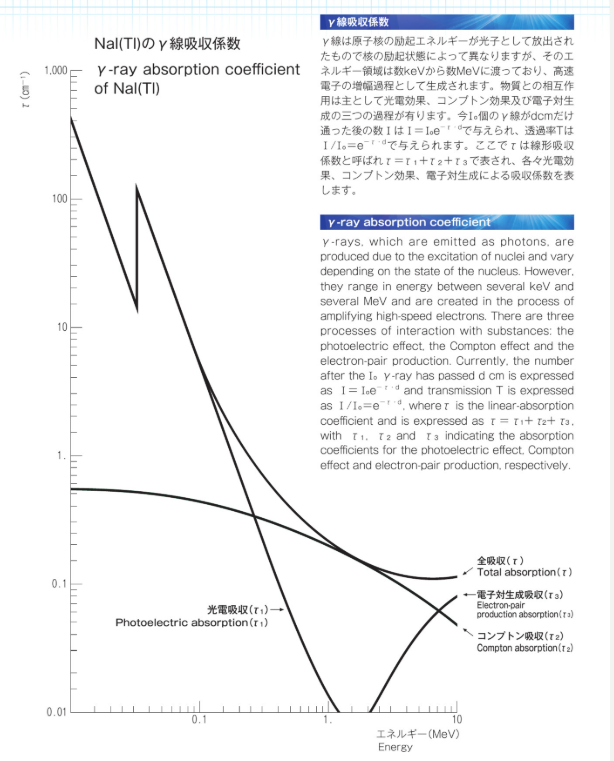 日本OHYO KOKEN KOGYO公司的碘化钠Nal闪烁晶体,密度3.67g/cm³,熔点 651℃,Tl含量约重量0.1%,最大荧光波长415nm,荧光衰减常数230ns,能量转换效率约 12% (21℃时),荧光的温度特性约+0.1 ~ -0.2%/℃,折射率1.85 (在最大荧光波长415nm处),415nm入射临界角34°(从 NaI(Tl) 到空气),入射临界角56°(从 NaI(Tl) 到硅油)。
