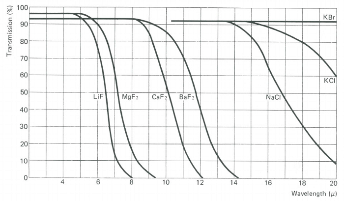 作为棱镜,其最适用的范围是 15 – 20μm。它可用作窗片或透镜,具有吸湿性。