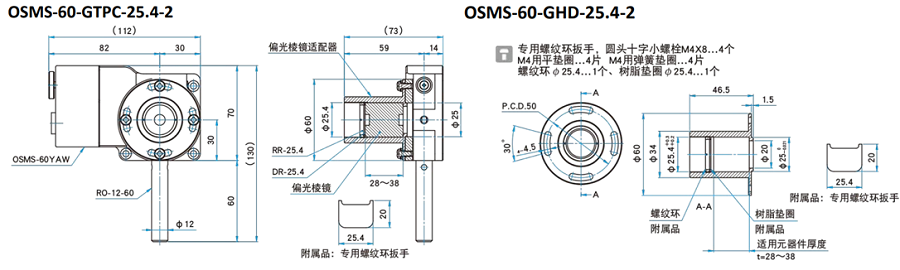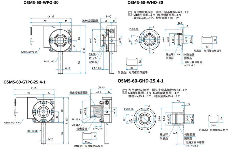 图:左:OSMS-60-WPQ-30;中:OSMS-60-GTPC-25.4-1;右:OSMS-60-GTPC-25.4-2