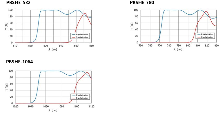 下图是高消光比分光镜标准品PBSHE-25.4C05-532,PBSHE-30C05-532,PBSHE-25.4C05-780,PBSHE-30C05-780,PBSHE-25.4C05-1064,PBSHE-30C05-1064的透过率波长特性曲线。