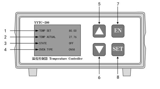 首先确认恒温炉机身背面的开关处于OFF位置,连接电源线,接入交流电源(100~240V通用输入),然后将非线性晶体炉的连接线接到温度控制器,最后打开温度控制器后面的开关,使其处于ON位置,屏幕上会显示主操作画面,画面上会按照从上到下依次显示信息: