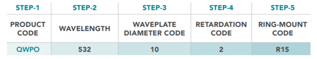 复合石英零级波片的命名结构与多阶波片QWPM系列一致。都是波长-直径编码-延迟数-接口规格组成。但是由于零阶复合波片的特点,其波长的带宽适应性会比多阶石英波晶片QWPM系列要宽一些。