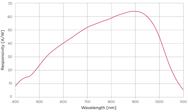 宽带宽APD探测器光谱响应曲线(增益@M=100时)