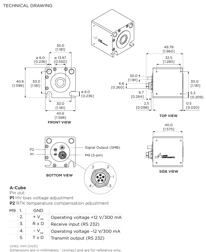 200μm A-CUBE 技术规格(典型值@M=10,25°C):