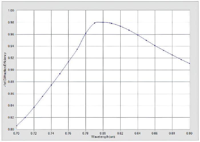 图3:透射光栅在700nm~900nm的-1级衍射效率曲线