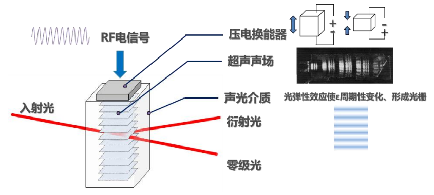 图:声光器件/声光调制器/AOM/光纤声光调制器/空间声光调制器衍射原理示意图