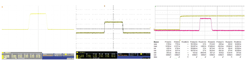 图:(1)光脉冲上升时间40ns (2)光脉冲上升时间10ns (3)光脉冲上升时间6ns