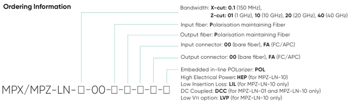 MPX-LN和MPZ-LN系列构成了市场上适用于1550nm波段的、最全面的电光相位调制器产品线。