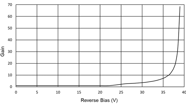 InGaSe雪崩光电二极管典型增益与反向偏置图