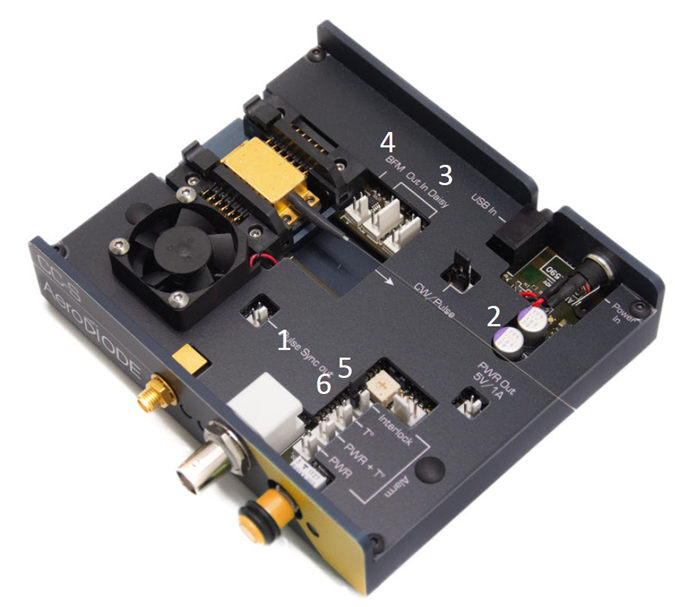 4.背面监测器连接器;Molex连接器用于激光二极管背面监测器输出。