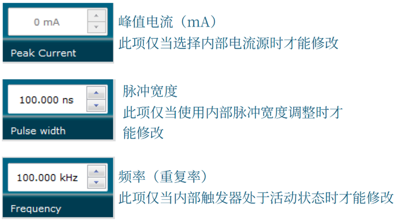 6.偏移/直流电流;此项可在脉冲和连续波操作中设置。它决定了流经激光二极管的连续电流。