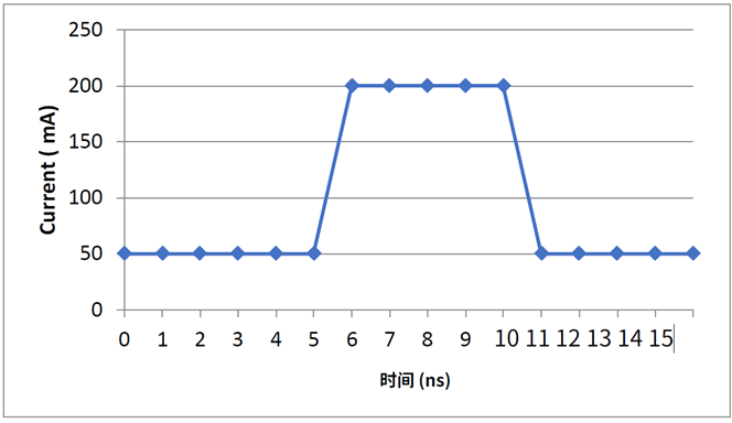 二极管电流通过图(软件参数:偏移电流= 50mA,峰值电流= 200mA,脉冲宽度= 5ns)