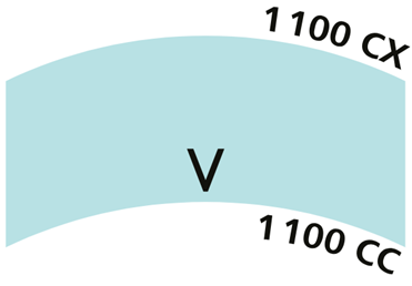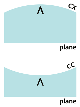 2、具有两个球面的基底,标记指向曲率半径较大的曲面(即曲度较弱的曲面),如图2:
