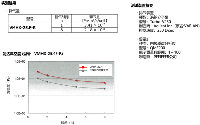 VMHX系列真空用镜架真空参考数据(到达真空度・释气量):