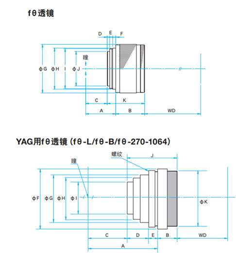 YAG用fθ透镜尺寸表