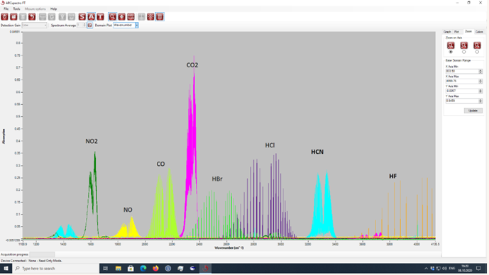 使用GASEX OEM设备测量了10种光谱的吸收气体,范围从25ppm到1000ppm
