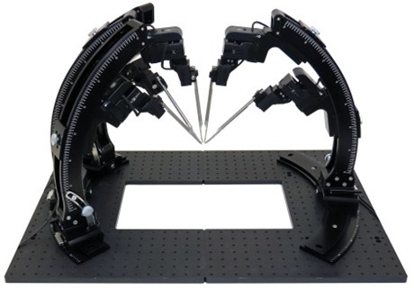 比利时Neuropixels神经电极探针与芬兰Sensapex微机械手有着长期的合作。其高通量数值采集系统Neuropixels 1.0和植入式神经电极探针Neuropixels 2.0均可以与芬兰Sensapex uMp-3三轴微机械uMp-4四轴微机械微机械手进行适配。为了更好的让电生理研究的客户使用Neuropixels的产品。比利时Neuropixels与芬兰Sensapex共同组建了一款电极植入系统Neuropixels Rig